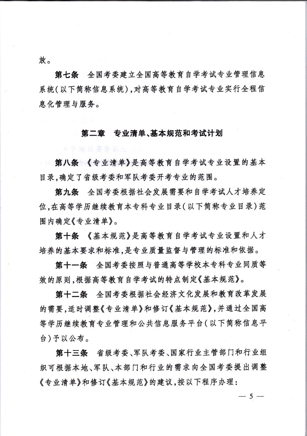 教育部办公厅印发《高等教育自学考试专业设置实施细则》和《高等教育自学考试开考专业清单》